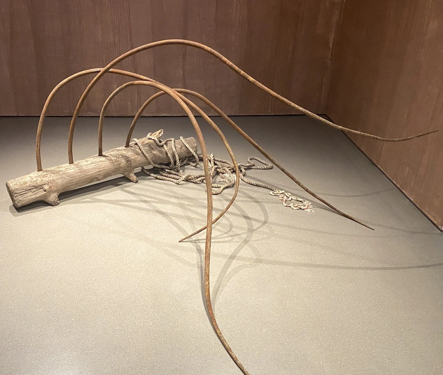 And then there’s Dominique White’s work: haunting, oceanic. Twisted metal forms rest against the floor like the remains of a shipwreck, surrounded by bright light and stillness.