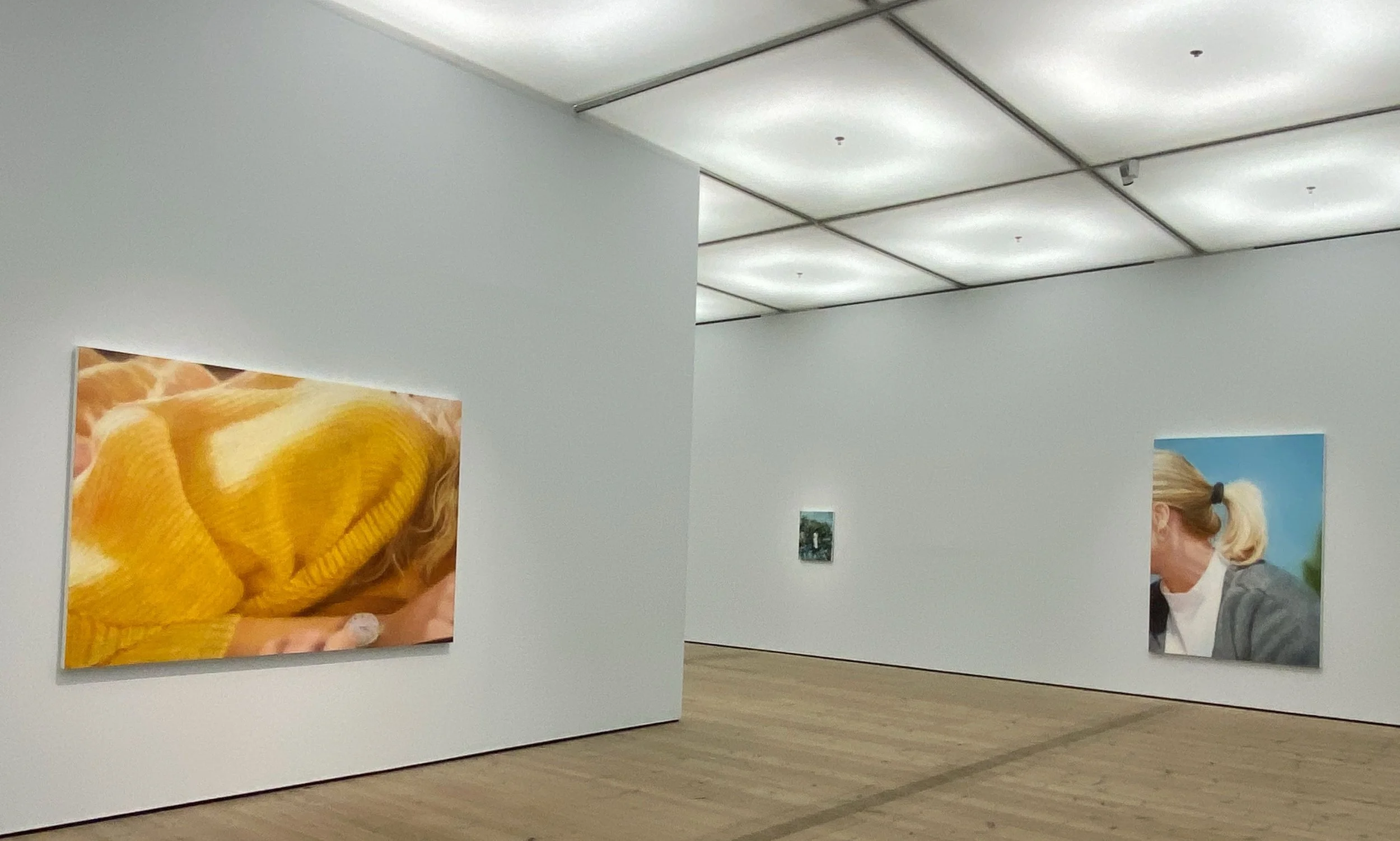 Rachel, in contrast, paints fragments lifted from 80s and 90s film stills. A nape of a neck, a hand resting on a shoulder, folds of fabric glowing in the light. Her oil paintings capture these details with such precision that they look like they’re illuminated from within. In her new large-scale works, that intimacy becomes monumental, pulling you closer to witness someone else’s tender moment.