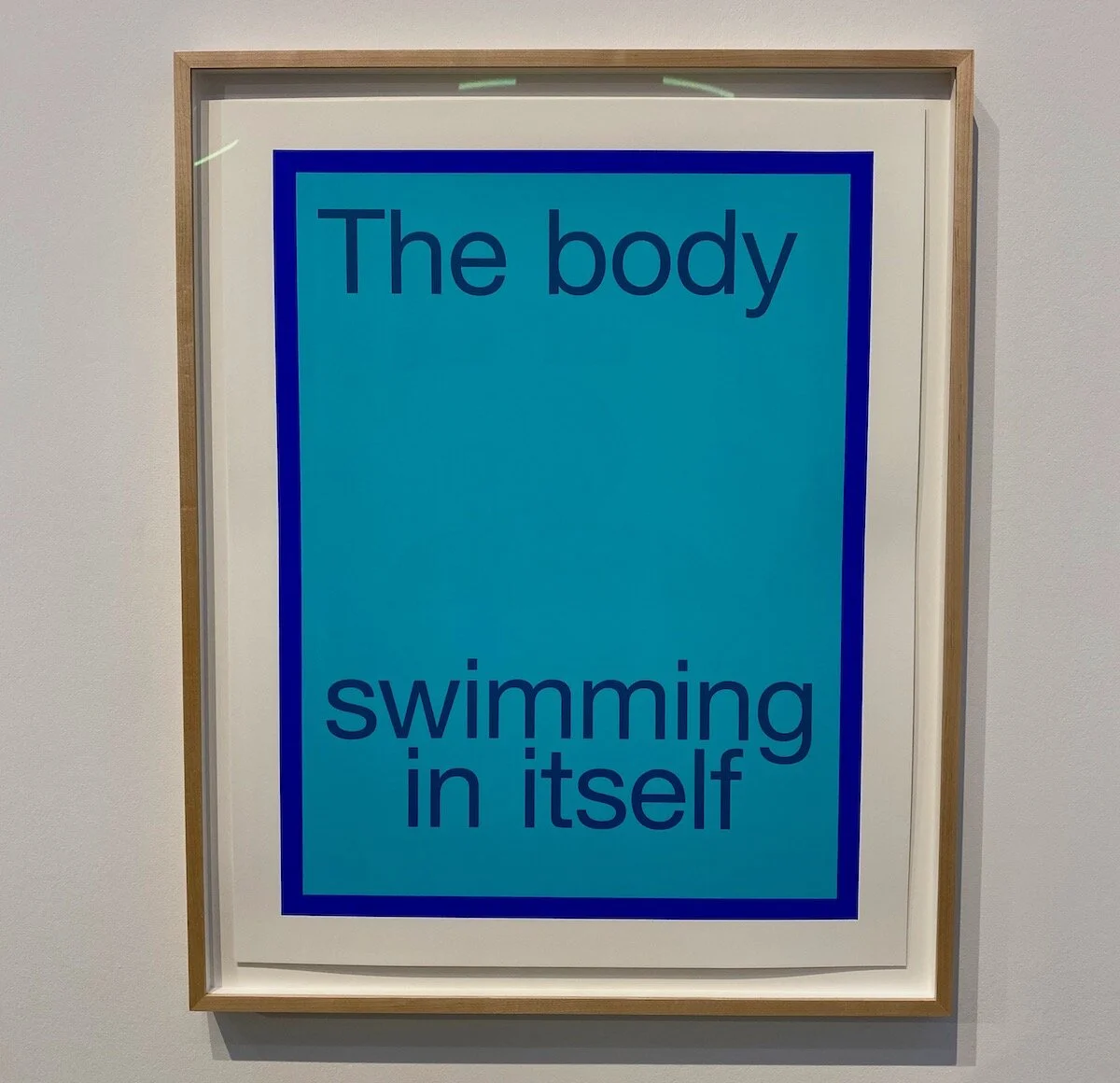 Around the walls of the gallery is a second work by Green: Space Poem #2 (Laura’s Words) which includes the words of poet Laura Riding Jackson, rather than free-flowing banners, these words have been framed, still in bold colours, but I started to wonder if I was experiencing these words different as they were confined behind glass.