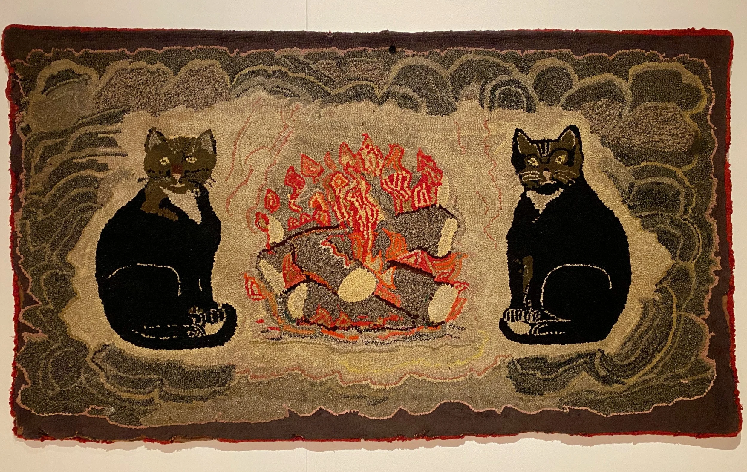 Two Cats by a Fire, Mary Bewick, 1970, Rag Rug